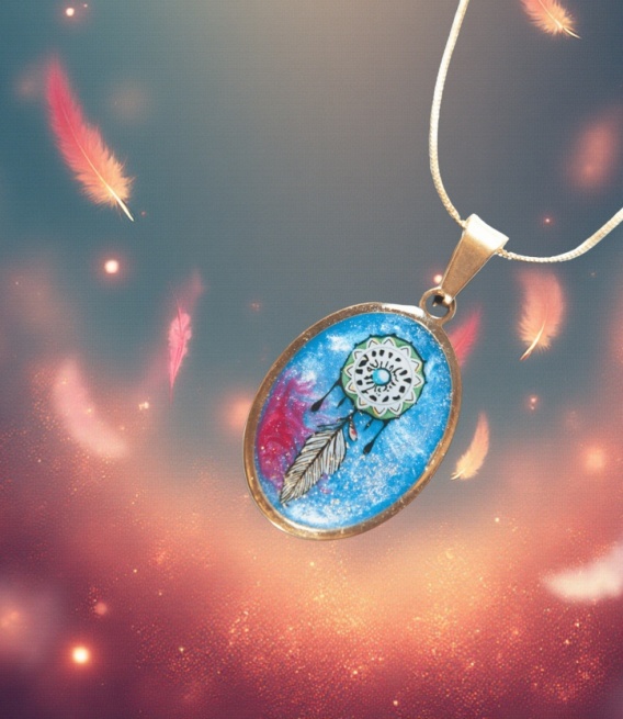 Naszyjnik „Błękitny Łapacz Snów” to delikatna, harmonijna biżuteria inspirowana indiańską symboliką oraz spokojem natury 💙✨